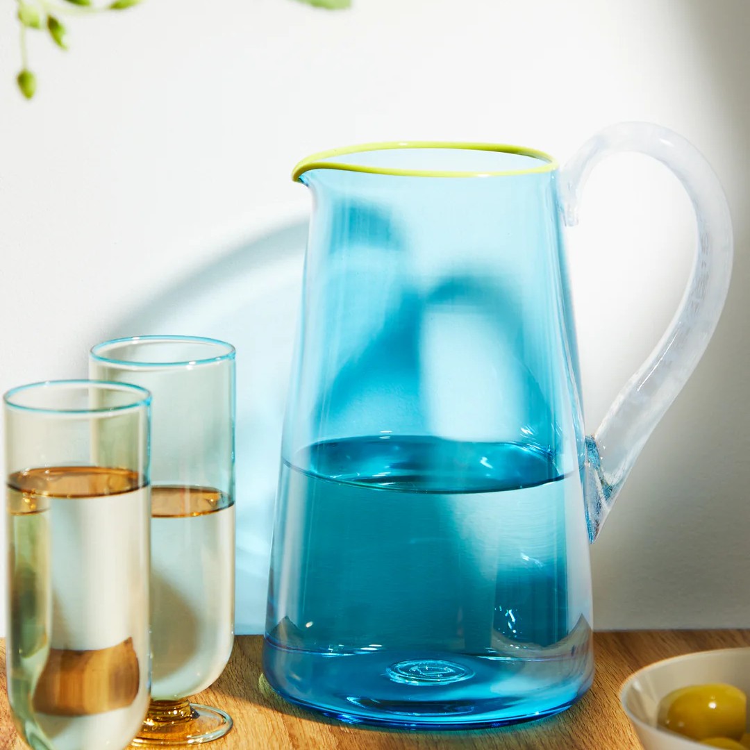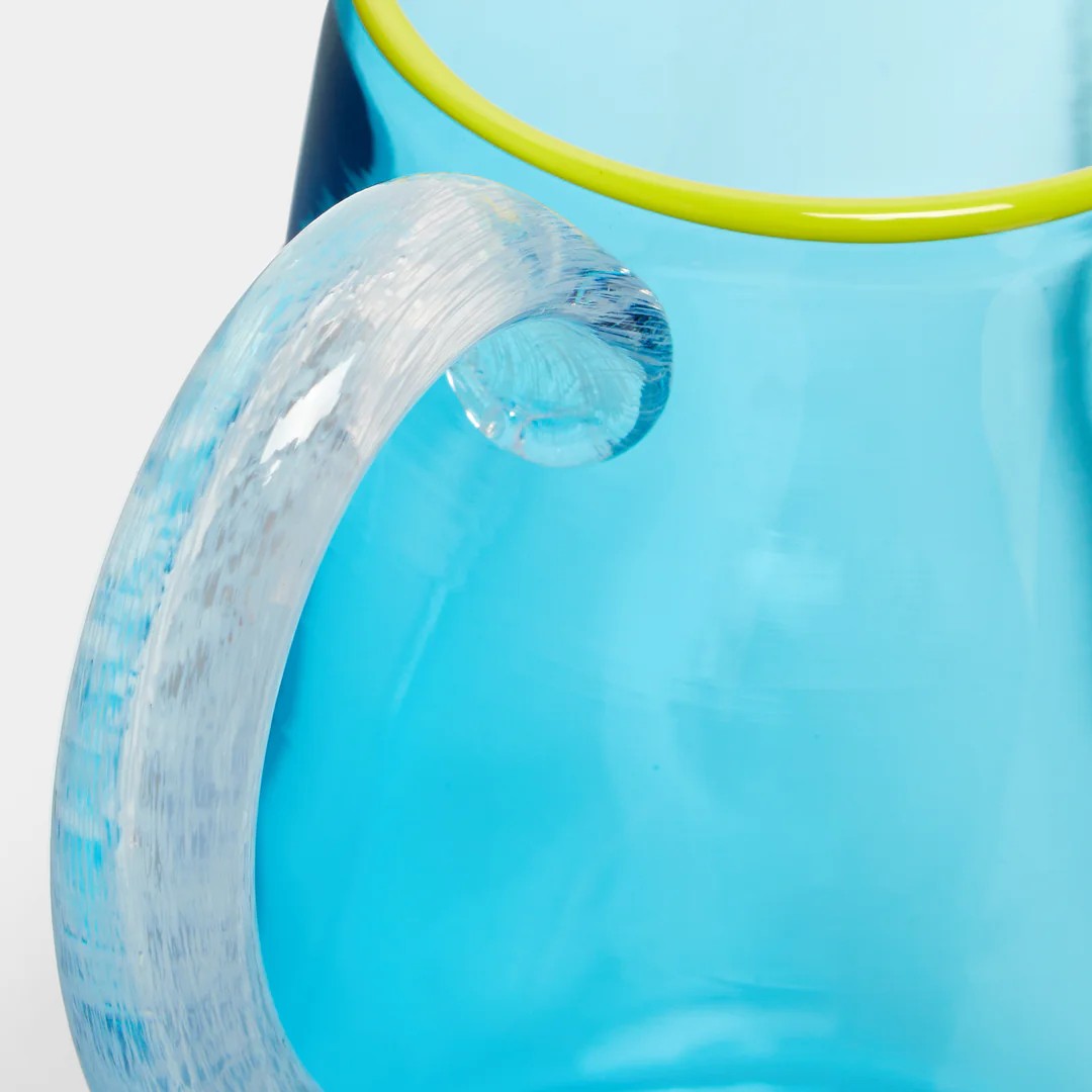 When searching for inspiration for the Miami collection, Gather looked to Dutch still life paintings, moved by the intricate shapes and fantastical narratives that feature. Selected from the series is this jug, hand-blown in founder Phoebe Stubbs’ London studio. It’s a mood-boosting picture of summertime joy, staying true to the maker’s vision with an exaggerated handle, contrasting lip wrap and candy colour palette.