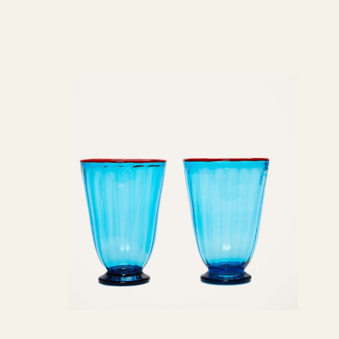 Created in partnership with world-renowned Venetian glassmaker Salviati, these mega-cool turquoise rigadin glasses are handmade in transparent Murano glass and come in a matching set of two.