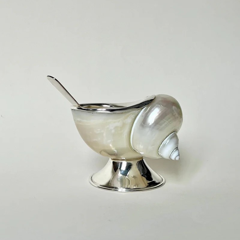 Indulge in the timeless beauty of the Natural Shell Sugar Bowl. Meticulously crafted from a stunning turbo shell, this piece is a true testament to the exquisite diversity of marine life.