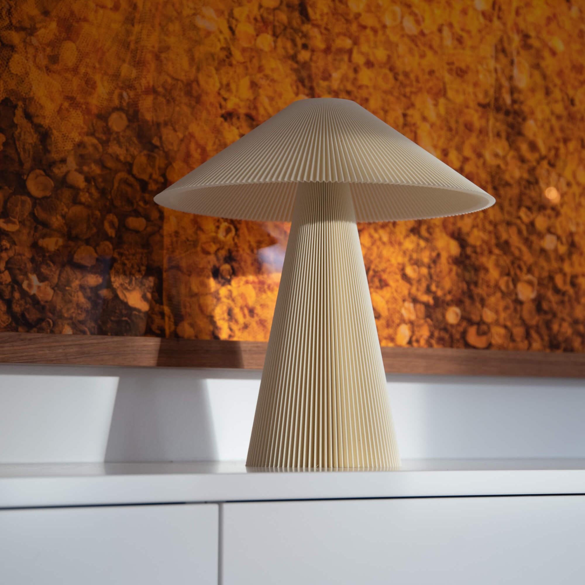 With her architectural presence and tactile pleats, the Teen Jane stands as a sculptural gesture within any room, fully dimmable to match every mood.